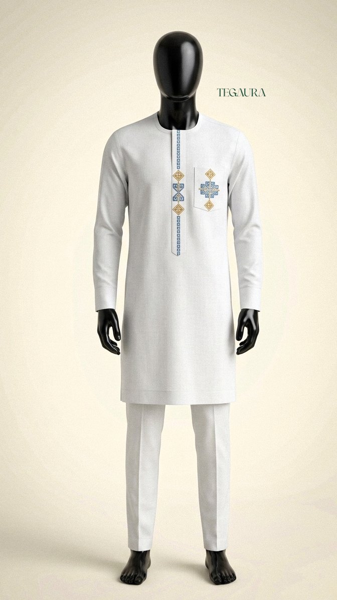 L’authenticité des grandes occasions. Honorez nos traditions avec élégance. Cet ensemble 2 pièces a été spécialement pensé pour vous accompagner lors des moments les plus importants de l’année : la Korité, la Tabaski, les grands Magal ou la prière du vendredi à la mosquée. Son design sobre, digne et respectueux de nos coutumes, s’allie à un tissu 100% coton de premier choix. Une tenue qui reflète vos valeurs et votre attachement à la culture sénégalaise, tout en vous offrant une prestance remarquable.
